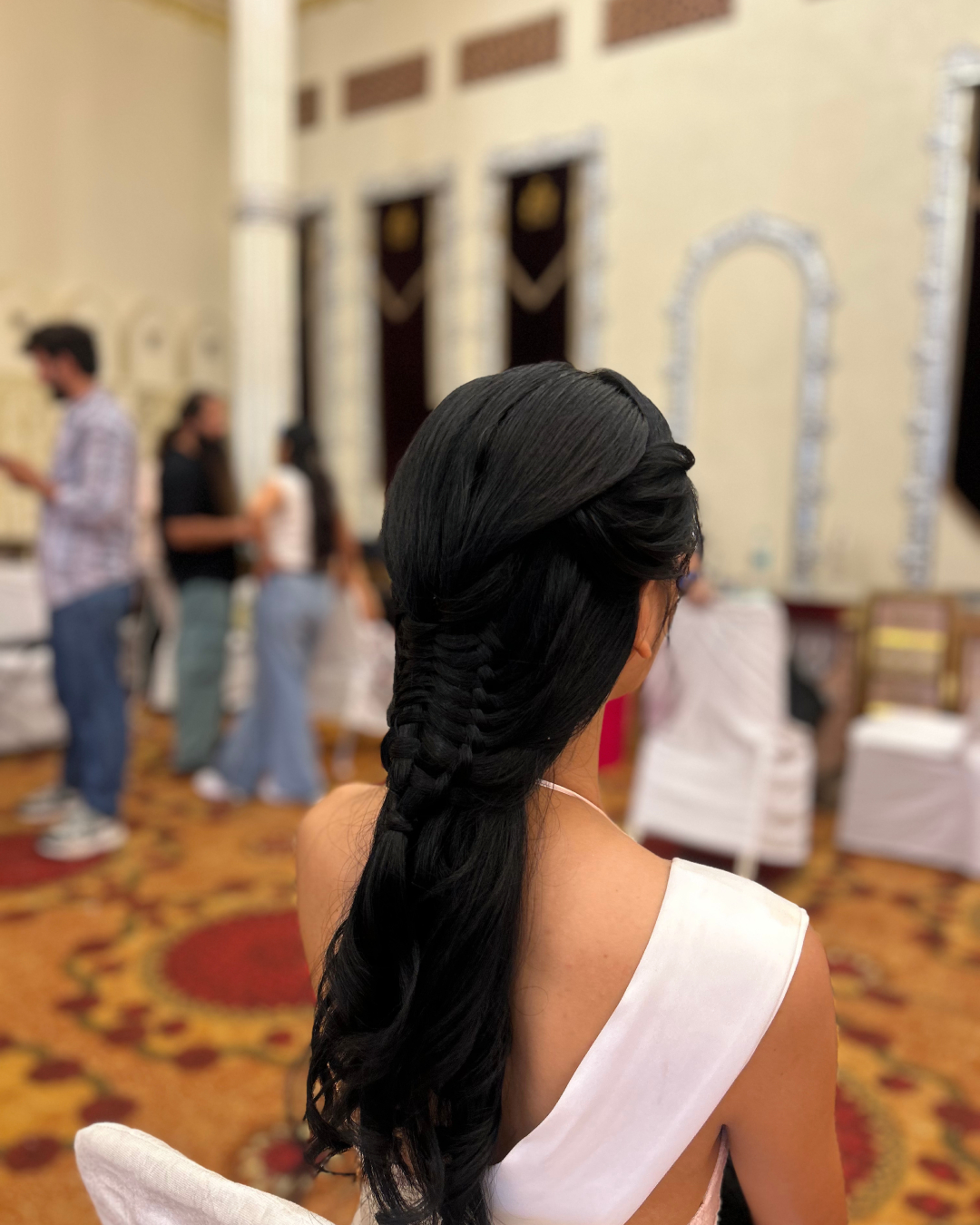 From elegant buns to free-flowing waves, we craft the perfect hairstyle that matches your outfit and wedding vibe.